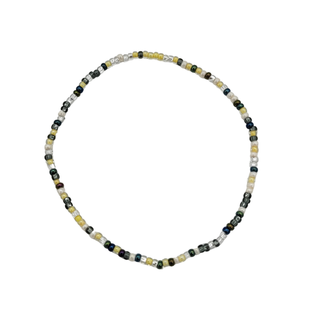 Meet the newest addition to your bracelet stack! Made of colorful seed beads, this delicate piece has the perfect look for layering. With your every move, each tiny, shiny bead catches the light.