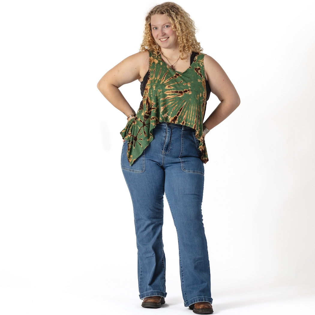 You'll feel airborne in this lightweight top, made of beautifully tie-dyed spandex. The asymmetrical cut adds a fresh element to the tank, which is perfect for layering, especially during the summer. Throw it over a sports bra, for instance, to keep yourself cool.