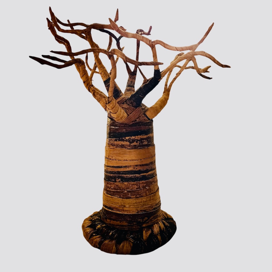 Here's a grand display stand for jewelry and small decorative items, like holiday ornaments or a flock of crystal birds. Wrapped tightly in banana fiber, the tree makes a sturdy yet lightweight centerpiece, with 28 branches and a wide, stable base.