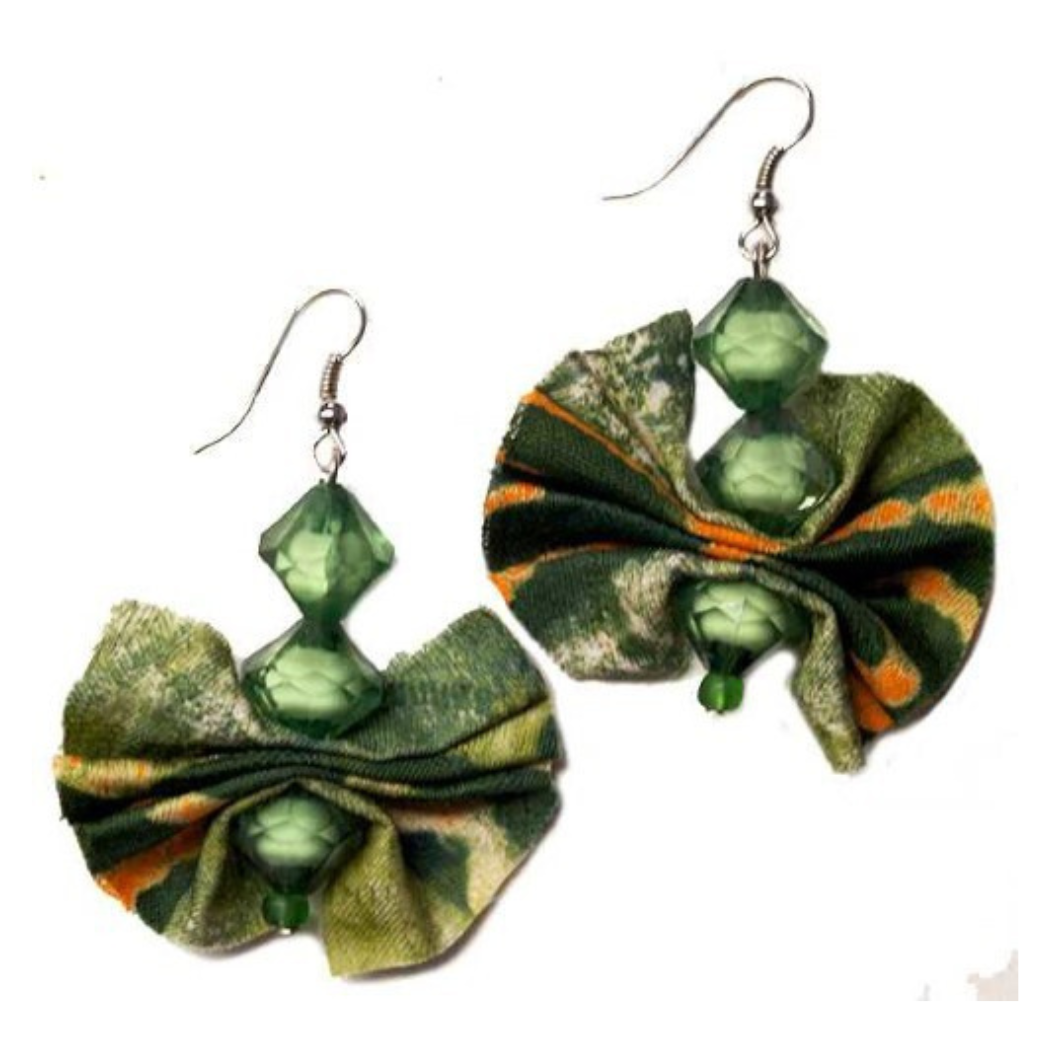 A lively combination of bright colors and textures! These one-of-a-kind earrings are made of repurposed batik fabric, embellished with matching sparkly beads. Eco-friendly as well as adorable, each pair is made using tiny pieces of batik fabric left over from making bags and clothes, and they all feature different patterns and color combinations. Assorted colors.