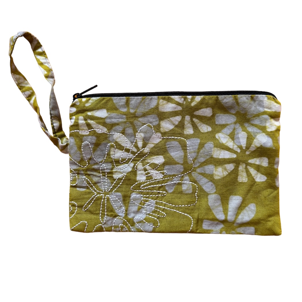 This soft cotton bag doubles down on design: against a backdrop of colorful batik, there's a lovely hand-stitched flower. There's also a side pocket, hidden beneath a flap.