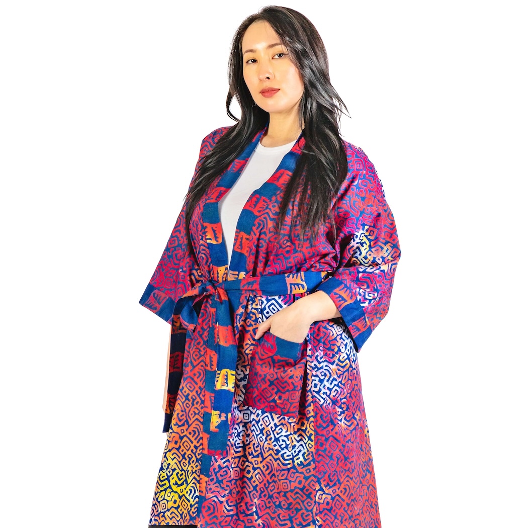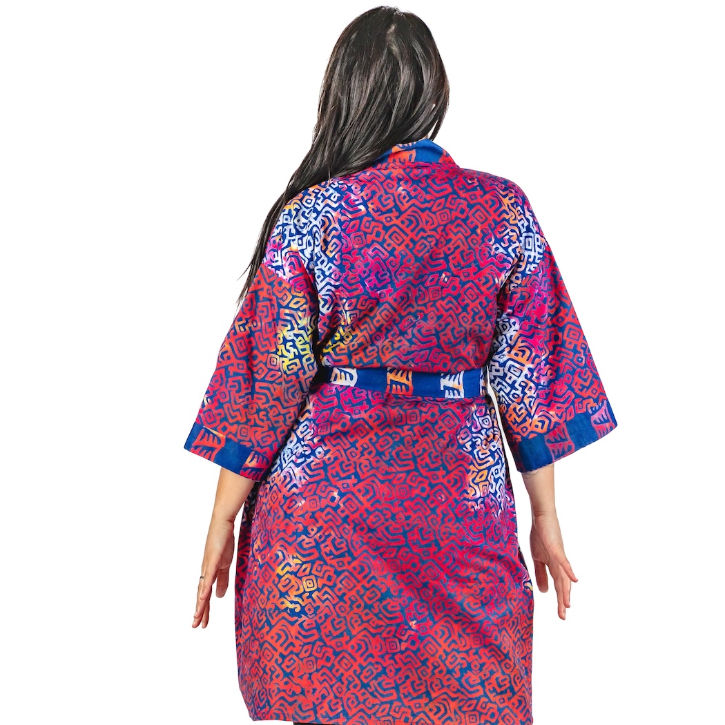 Be as colorful (and just as fashionable) at home as anywhere else. This soft 100% cotton patterned robe, handmade in Ghana, will transport you to an exotic, faraway place, right there in your slippers! One size.