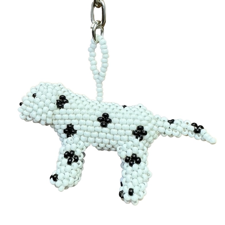 Here's a keychain that's easy to spot! Black and white seed beads create this delightful dog, a dalmatian that can stand on its own.