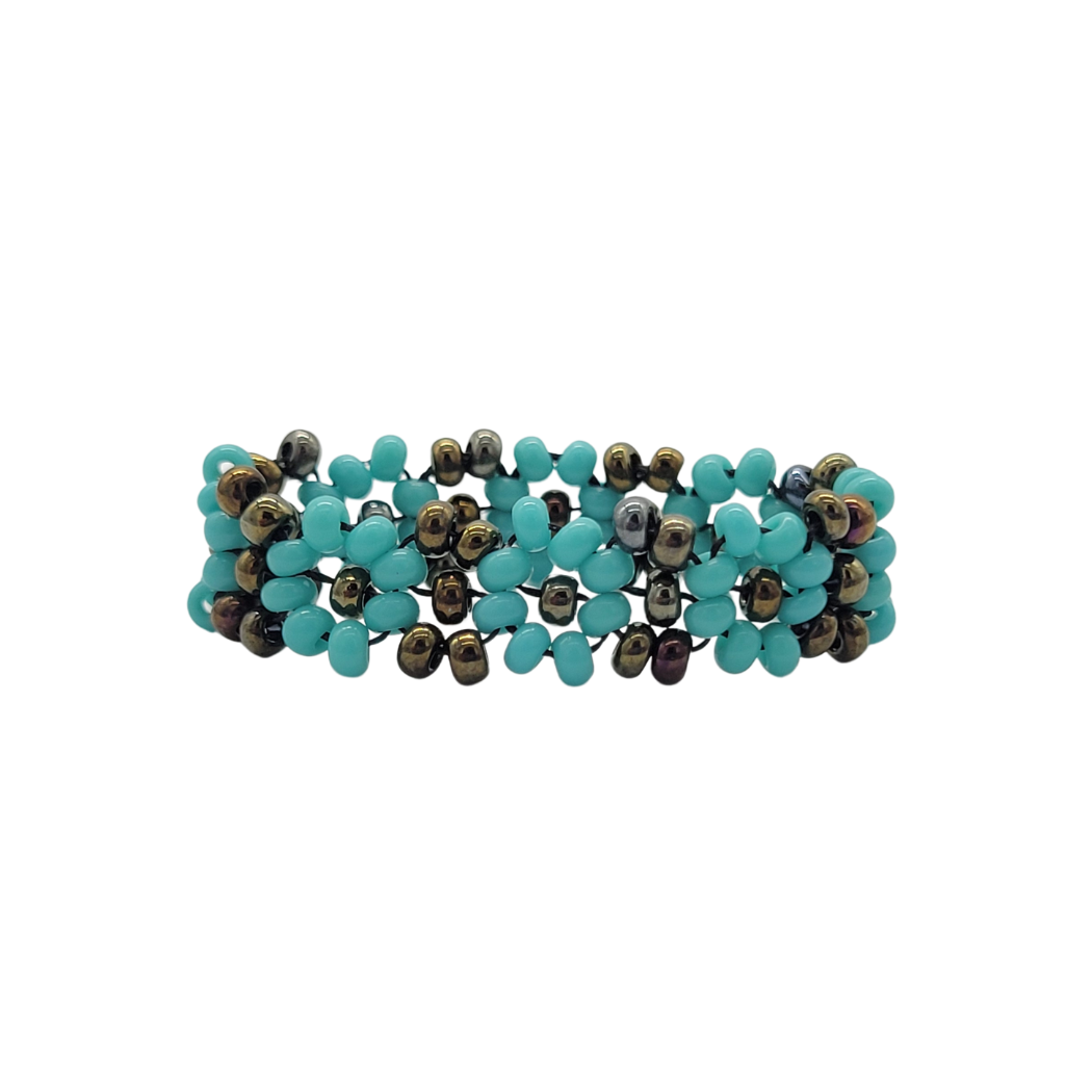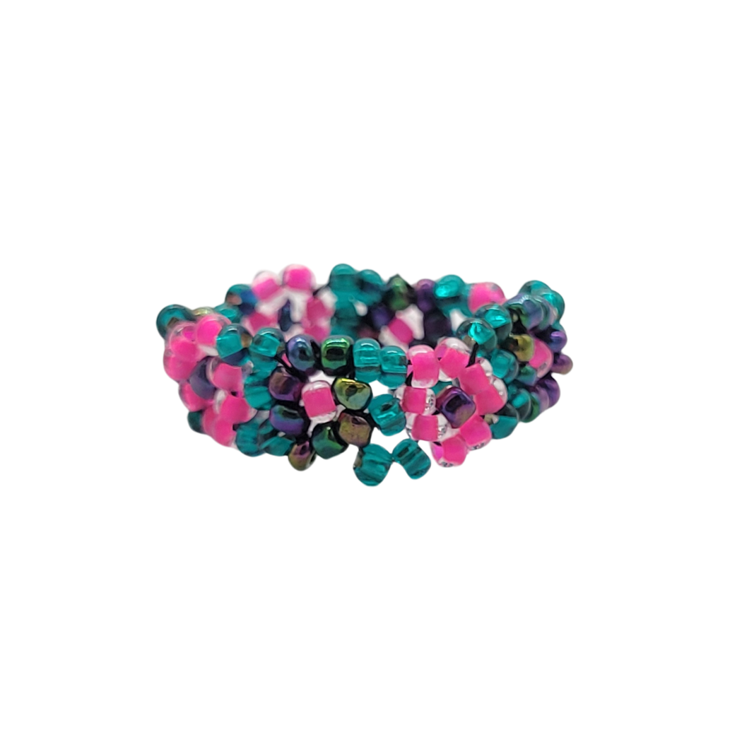 Springtime flowers, crafted from delicate seed beads, adorn this fun little ring. It goes beautifully with our beaded bracelet and beaded choker. Assorted colors and sizes.
