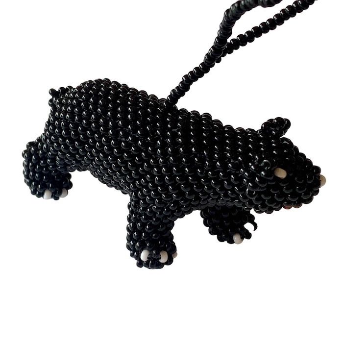 Judging by its sweet smile, this black bear is happy wherever you hang it. Scores of seed beads create the decorative animal, which you can also stand upright.
