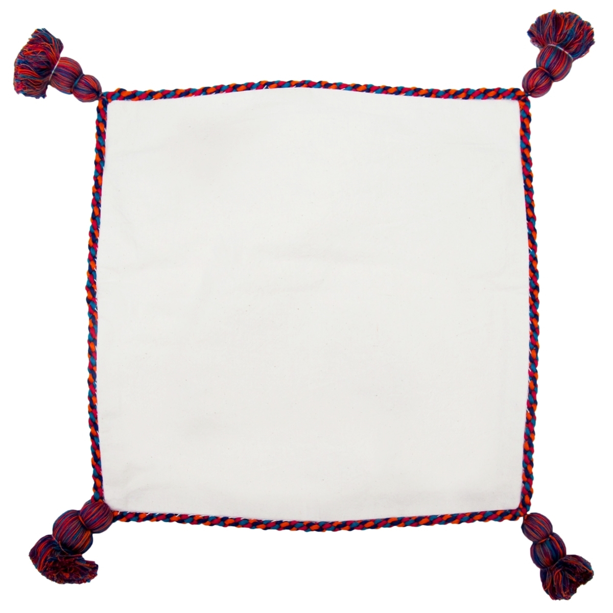 This cotton pillow cover has a crisp, clean look. It comes in a neutral cream, accented by the rich colors of a braided border and tasseled pompoms.