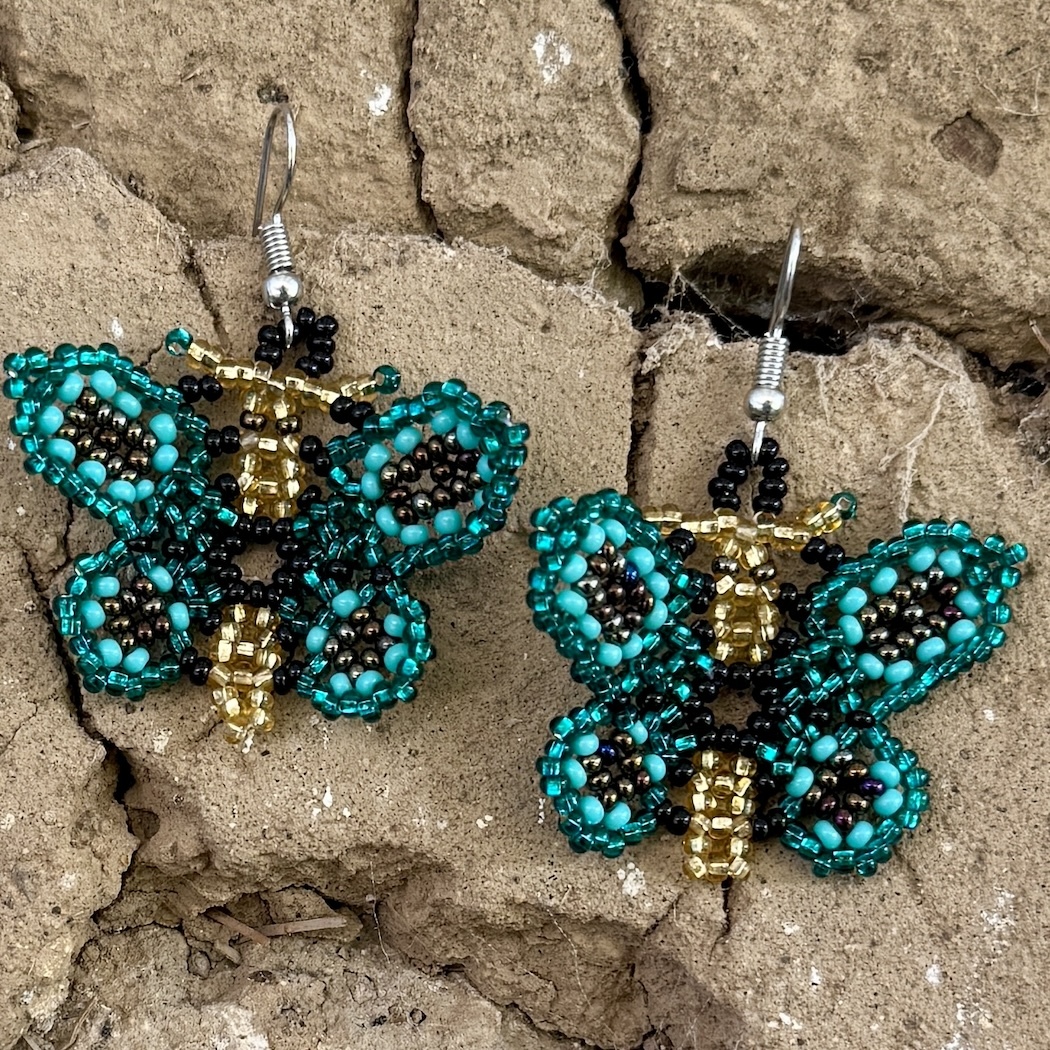 If you're a nature lover, these cute, colorful earrings will set your heart aflutter. The stylized butterflies, complete with antennae, are made of glittering seed beads. Pair these earrings with a beaded butterfly bracelet! Assorted colors.