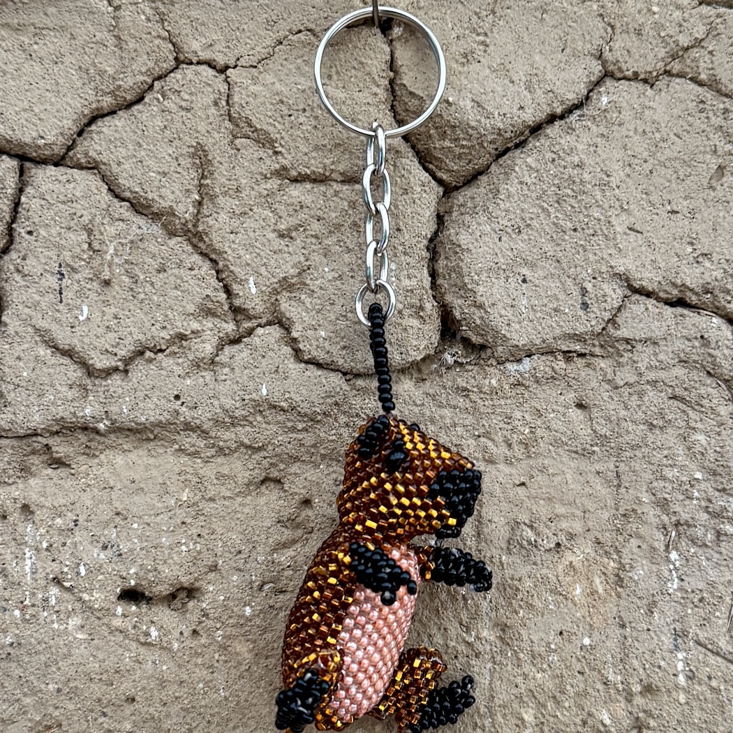 This singular keychain, handmade in Guatemala, celebrates an animal found in the wild there: the cute, calm capybara. Seed beads form the charming little creature, which boasts a beaded loop -- not to mention a pink tummy!