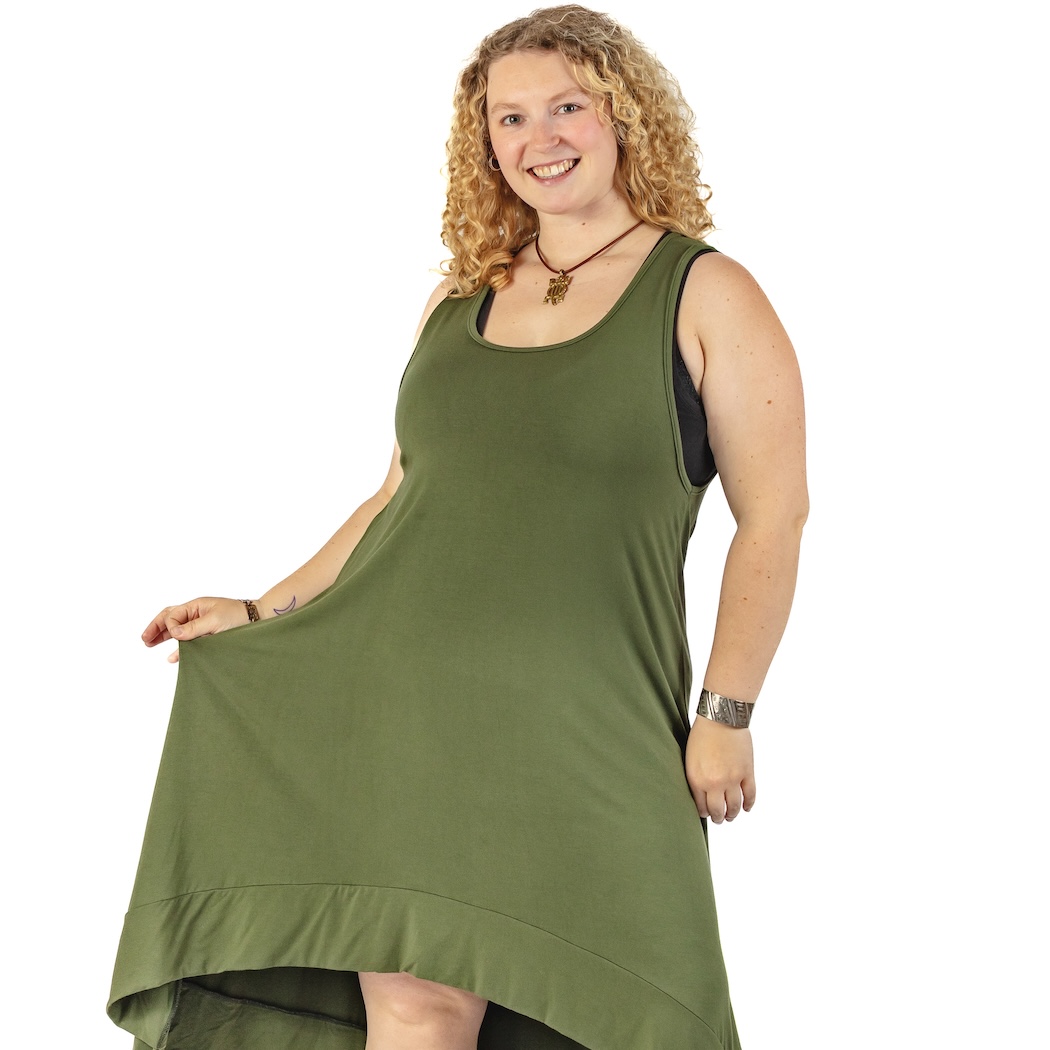 Measurements: 19.5" chest, 47" waist, 58" hips, 29" L in front, 42" L in back