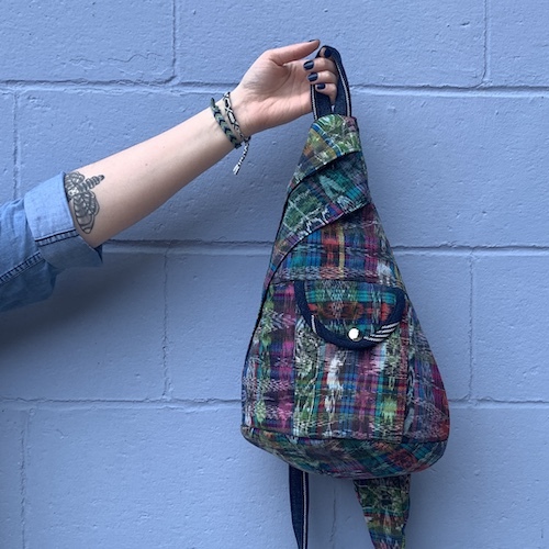 Made of thick repurposed 100% cotton CORTE fabric, this sling backpack is strong and spacious. It's lightweight enough to bring on your daily adventures, and sturdy enough to be a longtime travel companion. The back, bottom, and strap are all padded, so it's comfortable to carry all day long.