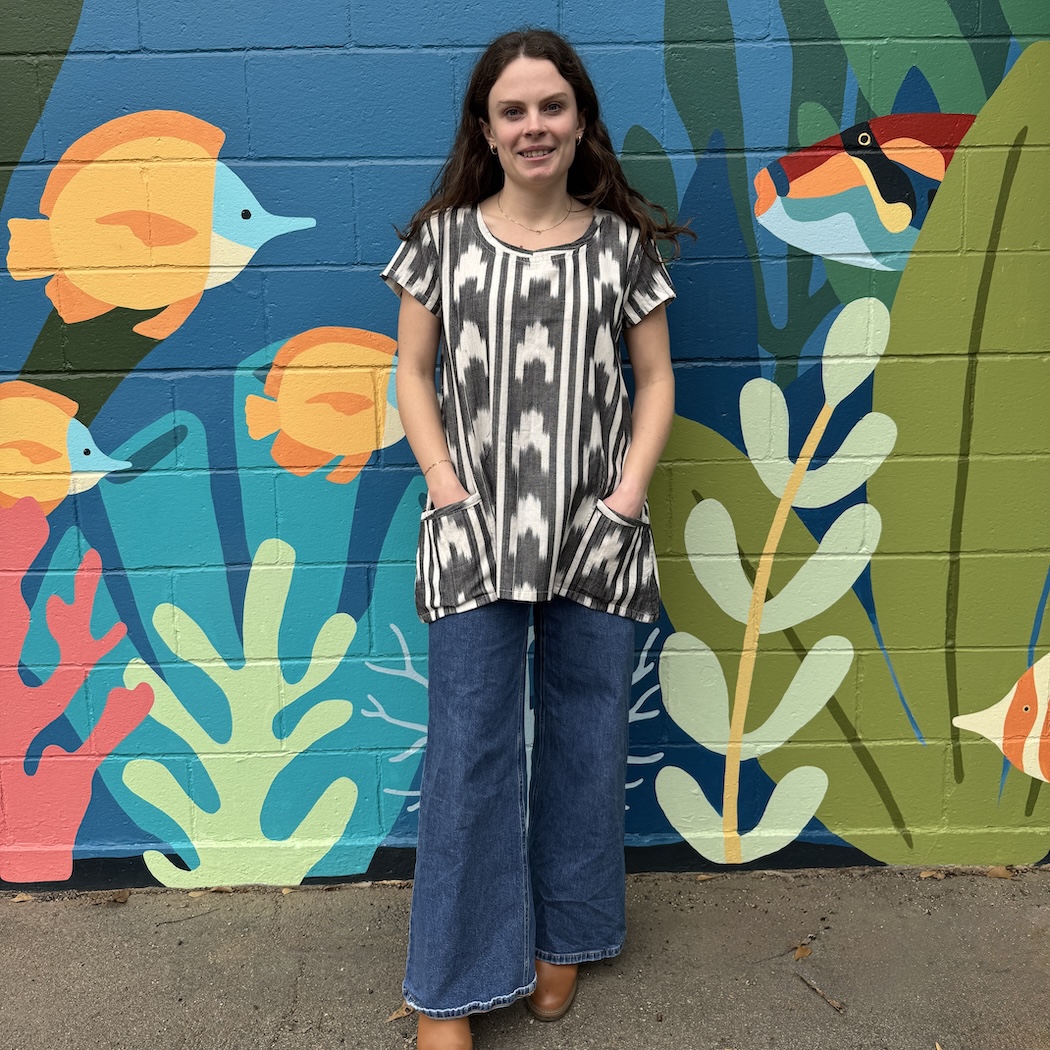 Handloomed in Guatemala, this striped ikat tunic is soft, cool, and comfortable -- just right for a stroll on a sunny afternoon. Made from 100% cotton, with two handy pockets in front, it comes in a wide variety of striking patterns.