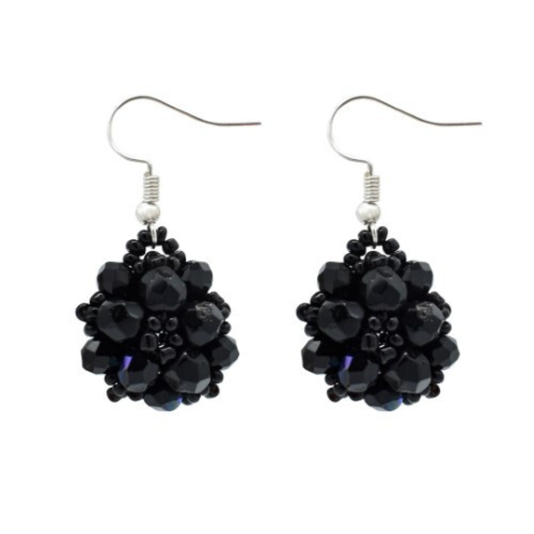 These sparkling earrings manage to be both stylish and playful. Multicolored seed beads and crystal beads form a smoothly textured disk, echoing the shape of a turtle shell.