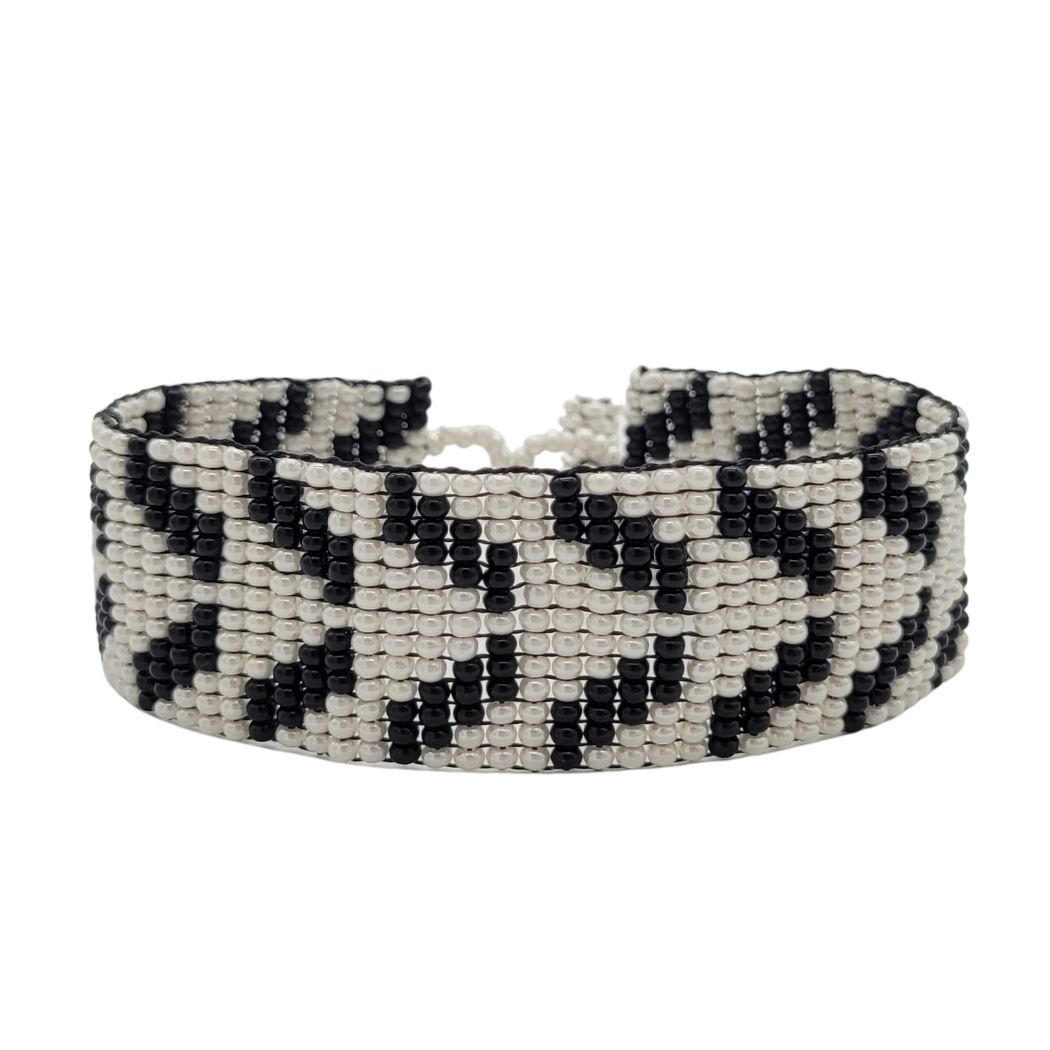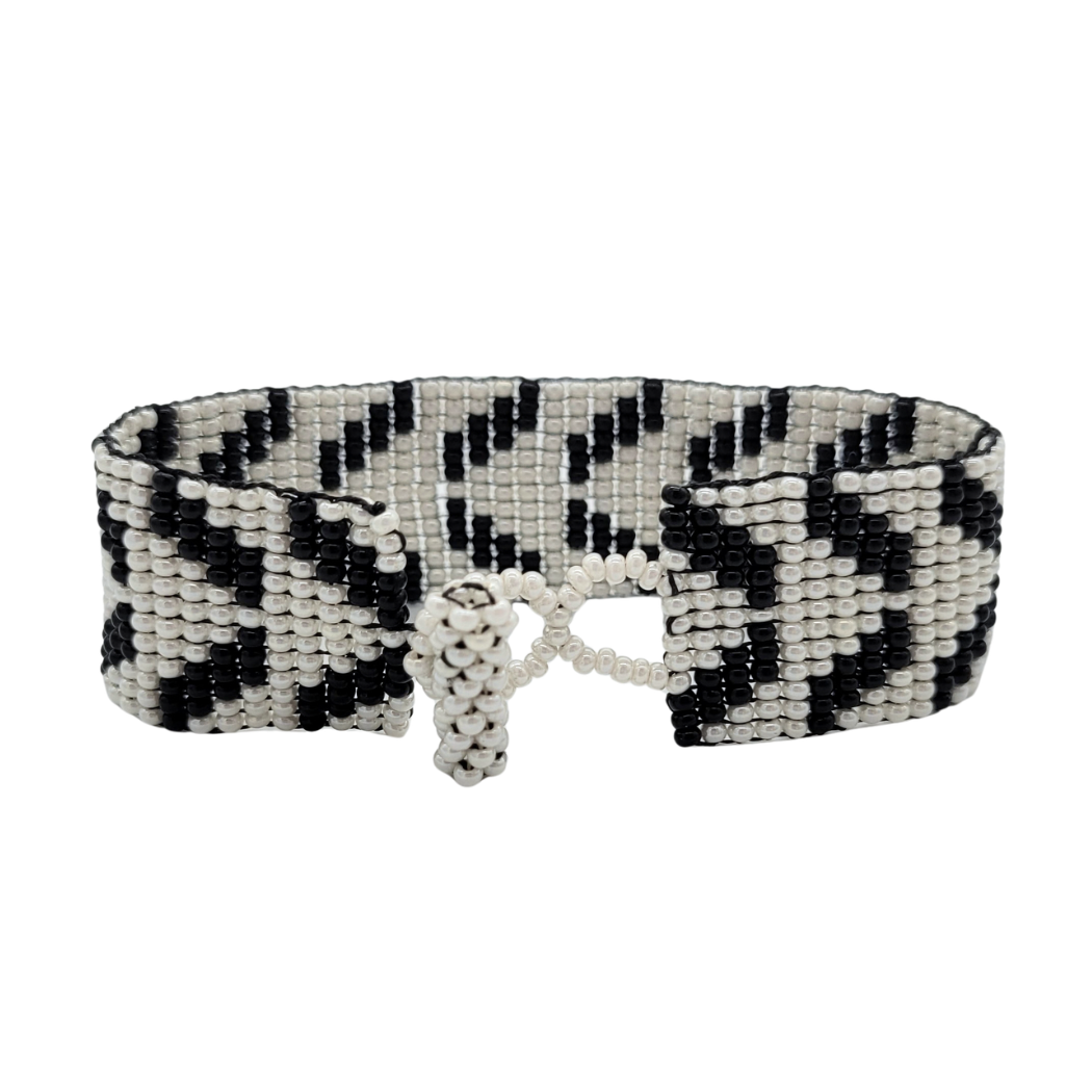 With its neutral tones, this elegant bracelet will complement any look -- or add a dressy note to a bracelet stack. Its geometric pattern consists of tightly knit seed beads, which make the bracelet both supple and lightweight. Even the closure, which allows for adjustable sizing, is chic and stylish.