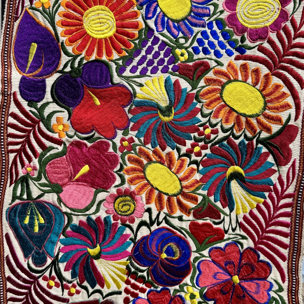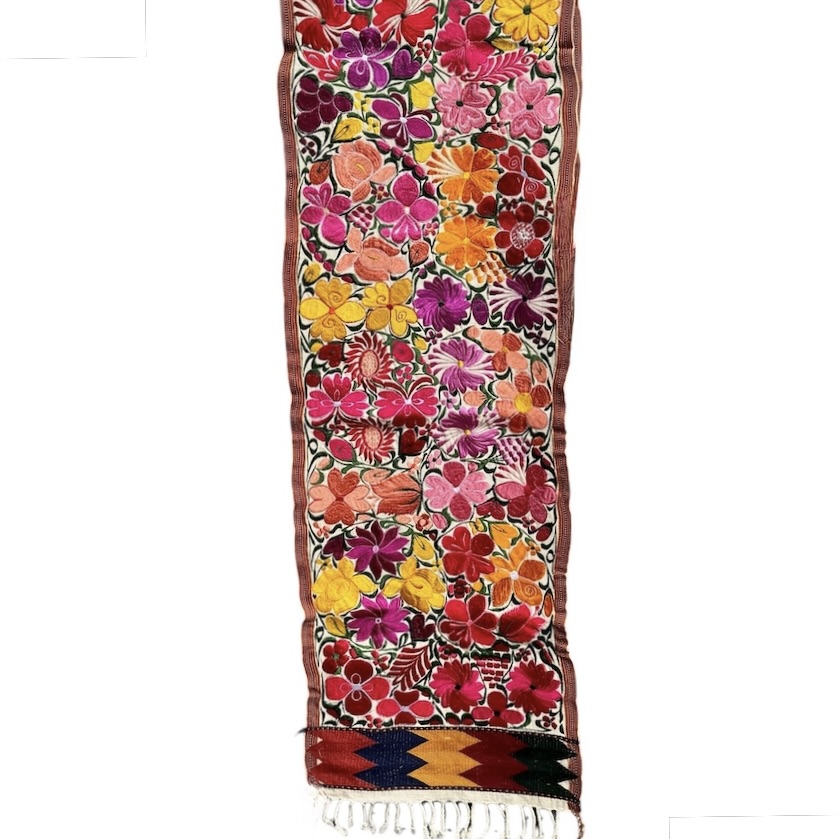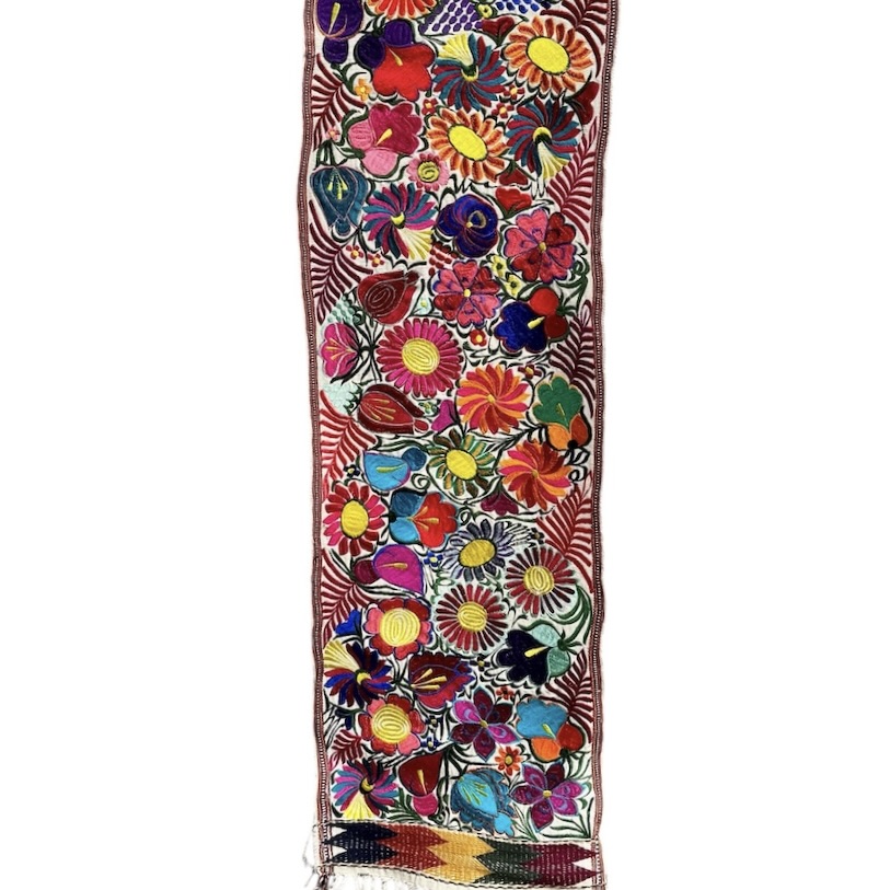 These embroidered pieces will add color to any table or wall. They are finely hand woven in the town of Zalcualpa Guatemala. The flower pattern is drawn on the fabric The artisan then embroiders on top of the fabric using a color palate of thread, changing shades of colors much the way a painter does, to get the beautiful color combination you see.