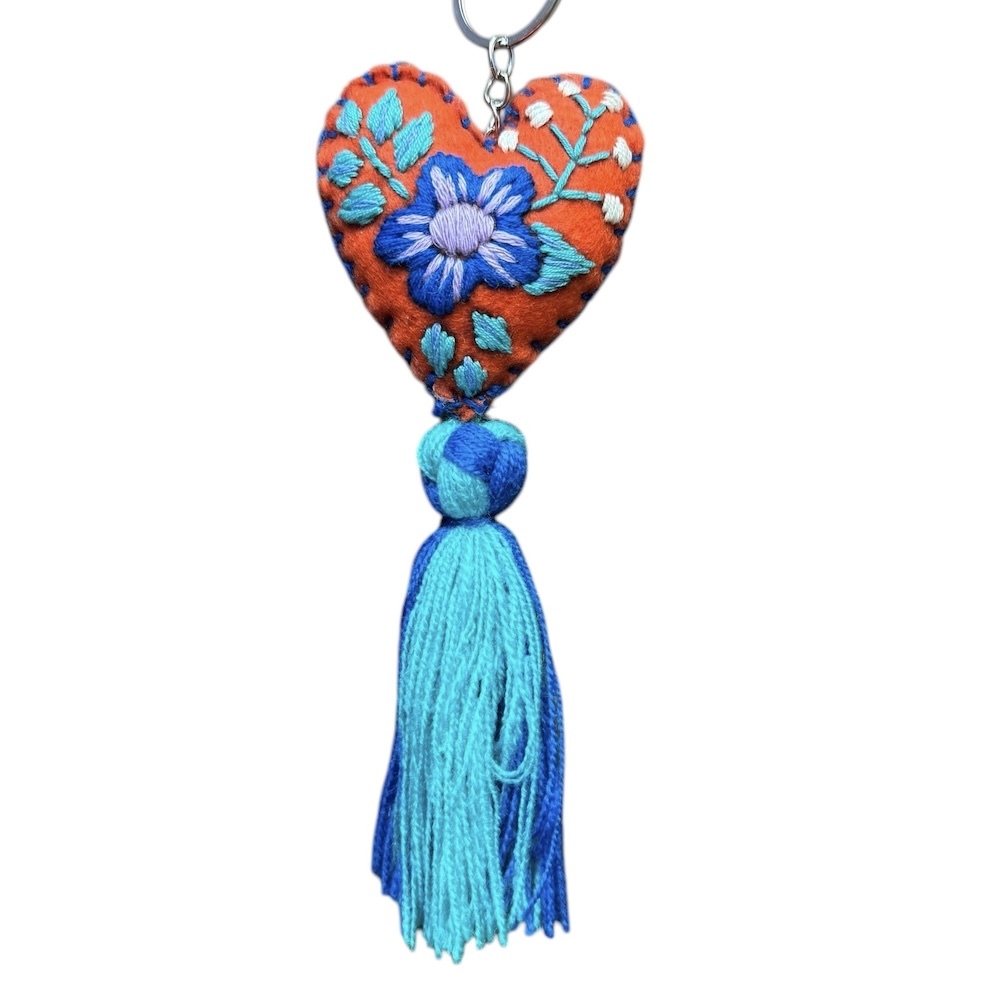 When you reach for your keys, treat your fingers to something soft! This charming keychain is 100% cotton, with a long tassel and floral embroidery on felt. Assorted colors and designs.