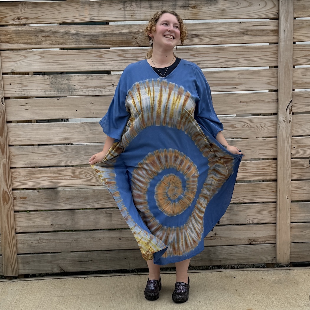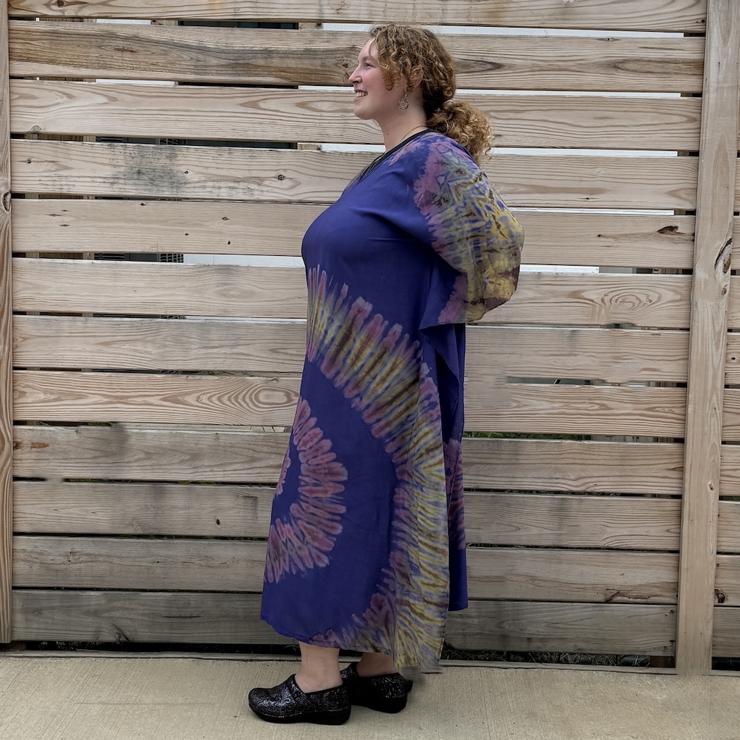 You'll feel like Cleopatra when you wear this flowy, showy gem. Made of tie-dyed rayon, it has fabric draping from the seams on either side -- to celebrate the queen within. One size.