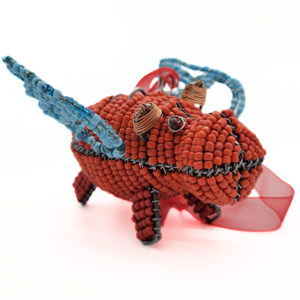Did you know that hippos could fly? They can when they have wings of beaded wire, like this charming ornament. Along with colorful seed beads, the hippo features a sheer ribbon for hanging.