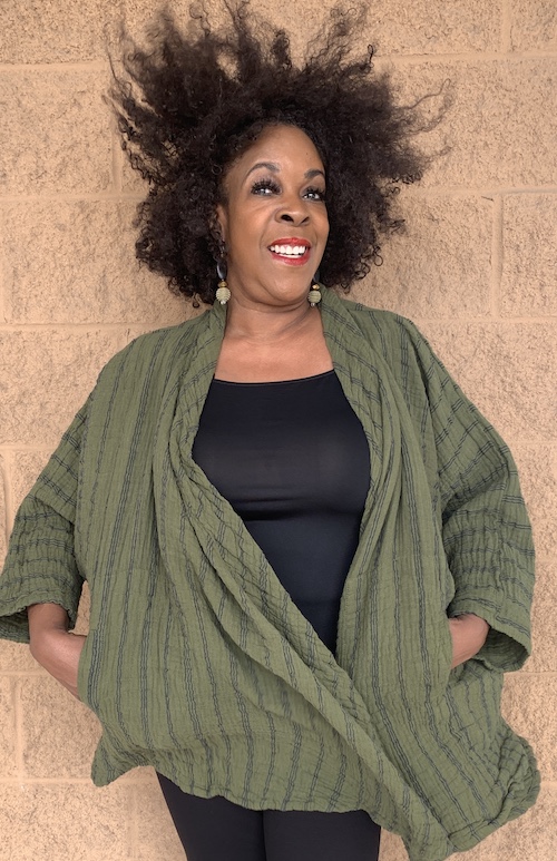 This long, flowy jacket, made of soft gauzy cotton, gives you loads of room. Subtle stripes add style to the piece, which also features a wide lapel and a pair of pockets in front.