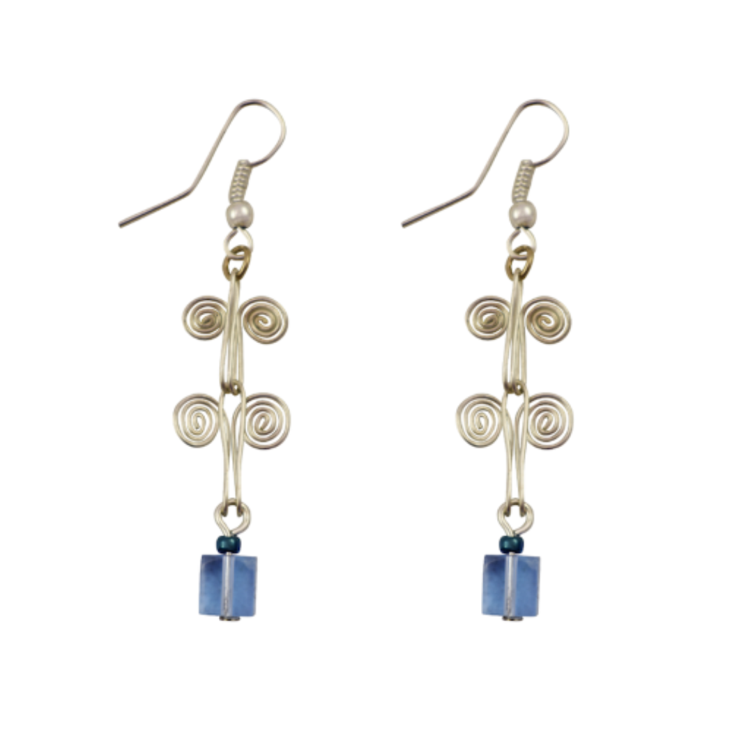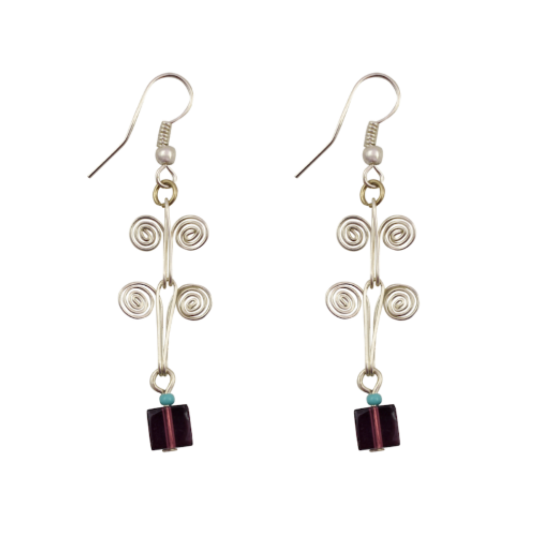 The same sophisticated look as our glass cube necklace! On each of these earrings, you'll find four metal spirals and a glass cube in a cool color.