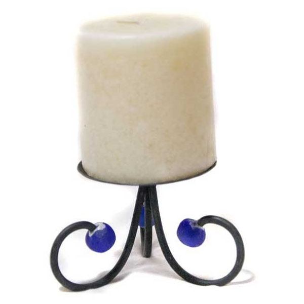 This nifty piece, made by hand in Ghana, can hold either a votive or a pillar candle. The design is simple and modern, with recycled glass beads adding touches of color to the sturdy metal tripod.