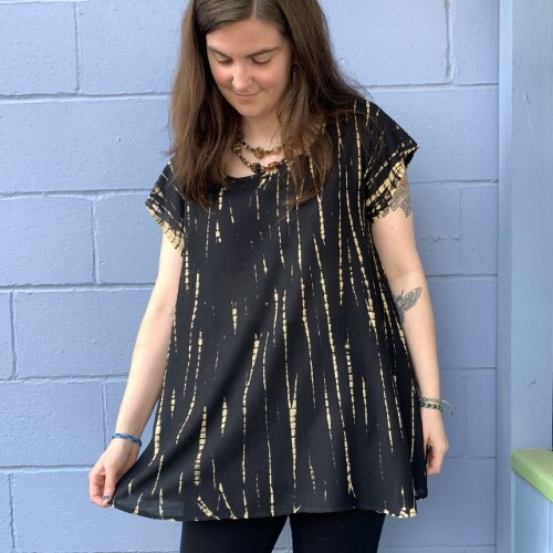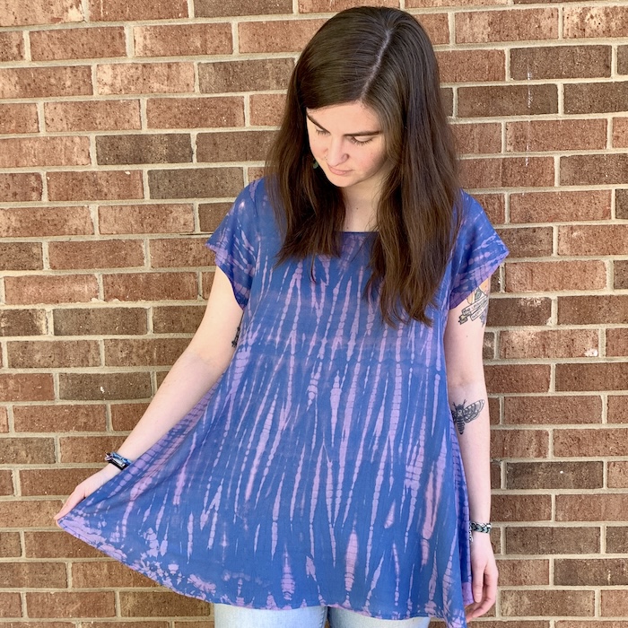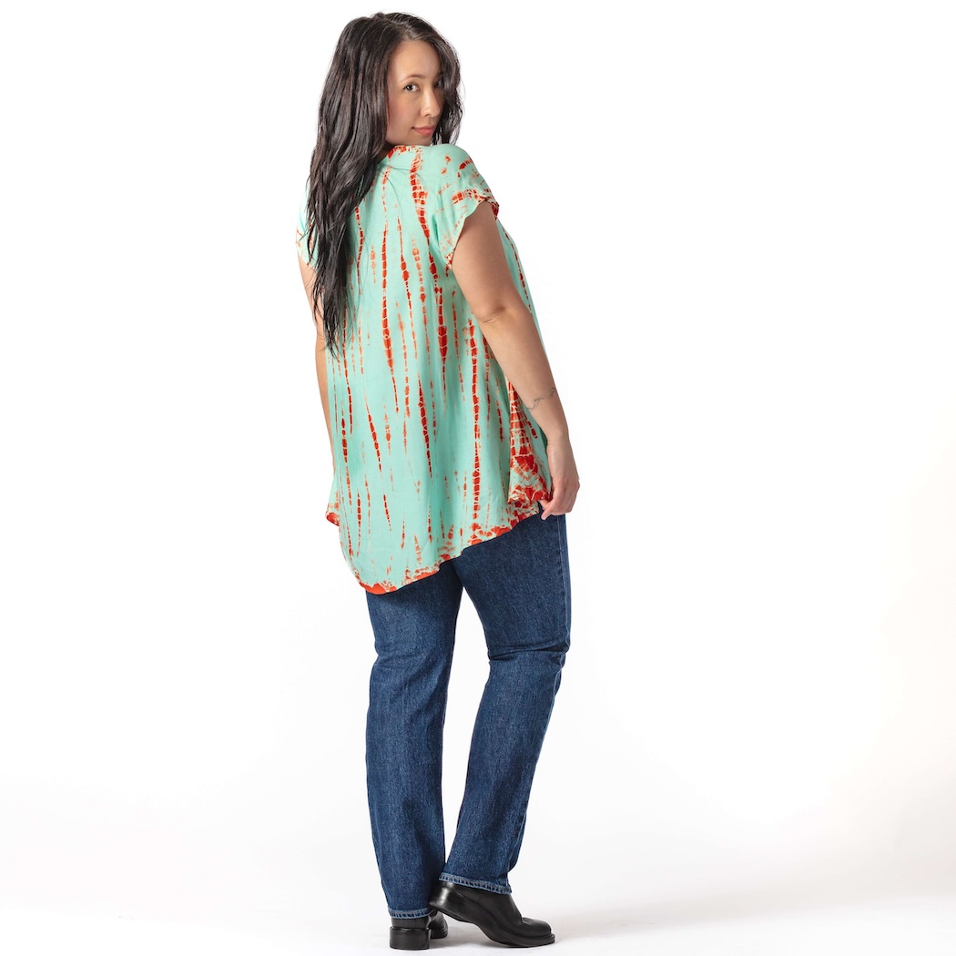 The perfect way to welcome warmer weather! Tie-dyed in delicious colors, this lightweight rayon top features a wide neck and cap sleeves. One size.