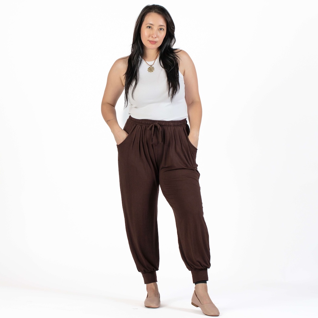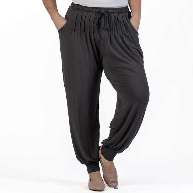 These comfy spandex pants feature an elastic drawstring waistband. They go with almost any top, and they're cuffed at the ankles, to add a touch of sophistication. One size.