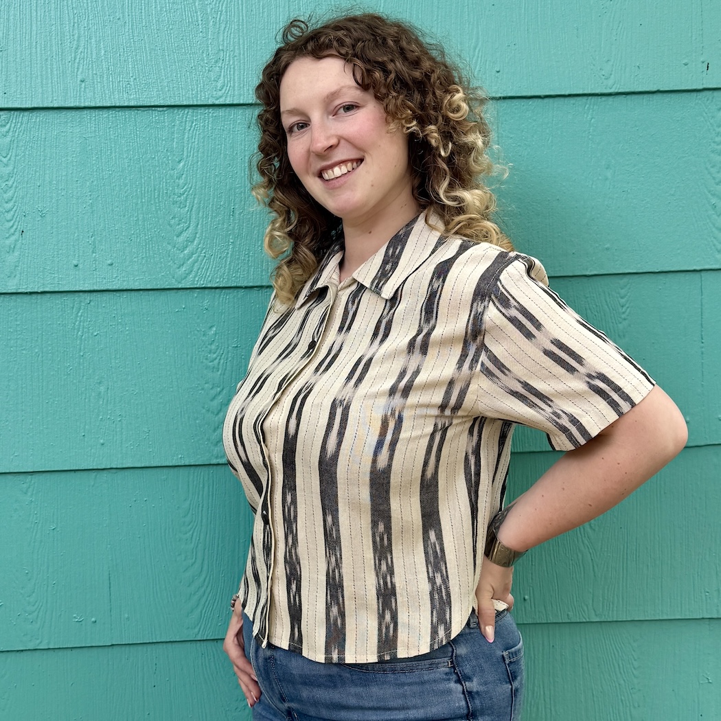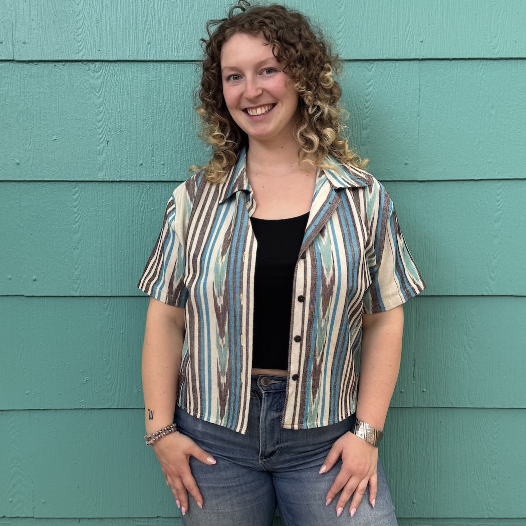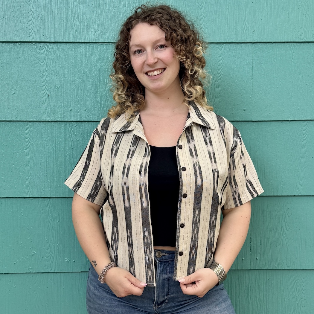 This collared short-sleeve button-up offers a flattering fit that can be styled for endless occasions. Wear it fully buttoned for a more polished look, or open as a lightweight layer for a relaxed, casual feel. A visually rich ikat pattern adds depth and character to the shirt's classic design. Made of 100% cotton, it offers a balance of structure and comfort without being rigid.