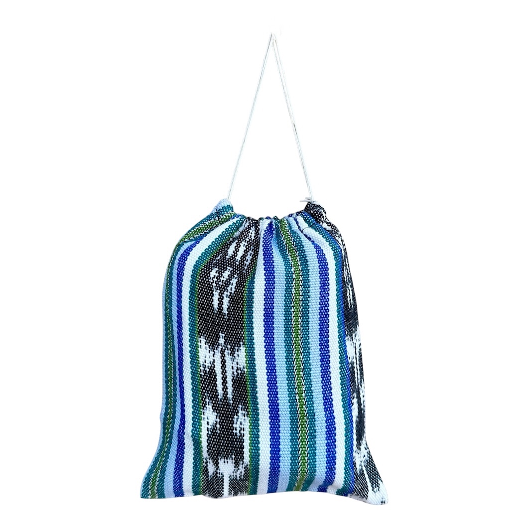 This handcrafted gift bag makes any present extra special. Its colorful pattern comes from 100% cotton, woven by hand, and it closes easily with a drawstring of cotton thread. You can use it for giving larger gifts or storing valued keepsakes.