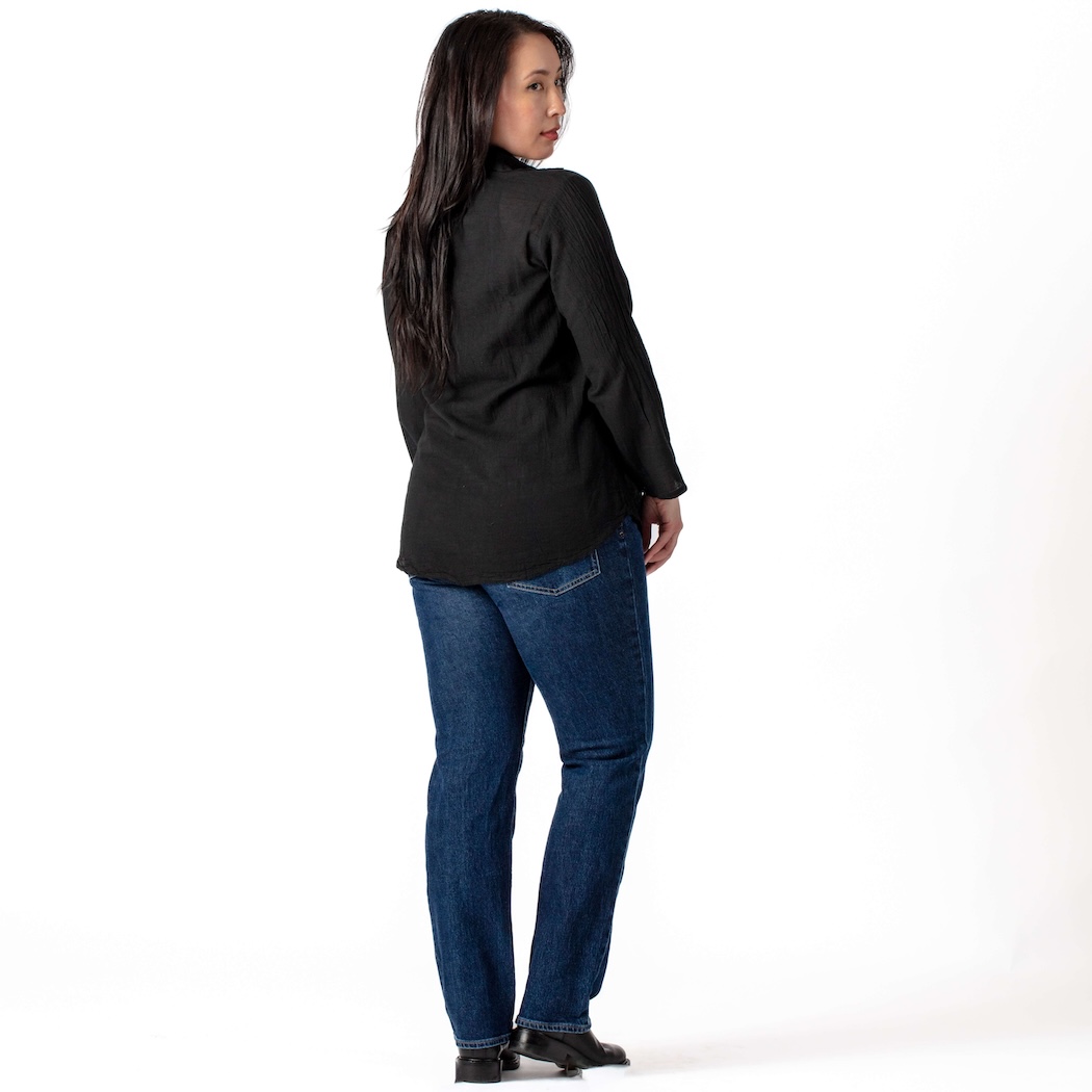 Lightweight cotton makes this shirt a sheer delight. In addition to long sleeves and a soft collar, it features buttons carved from coconut shell. One size.