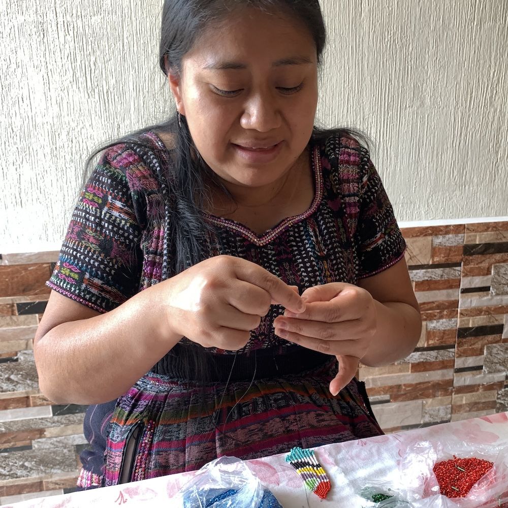 Handcrafting a pair of beaded earrings.