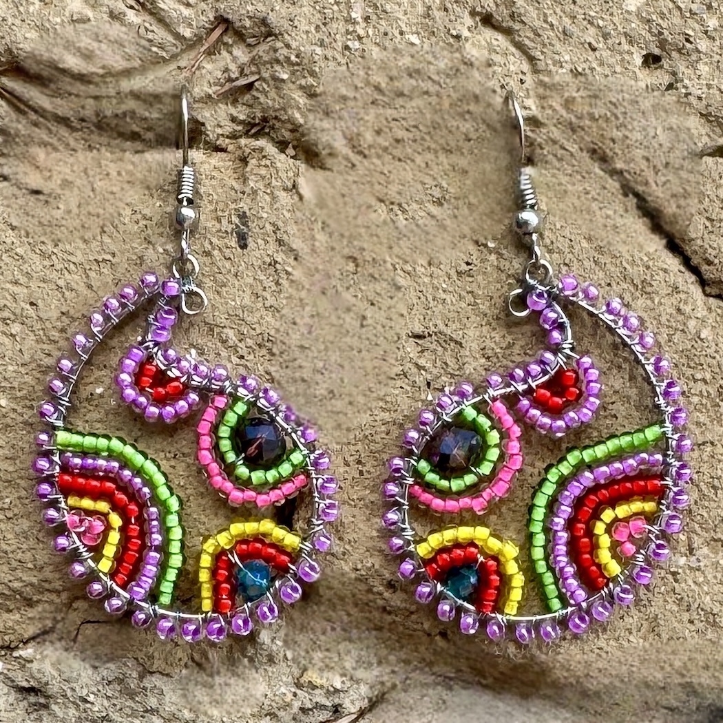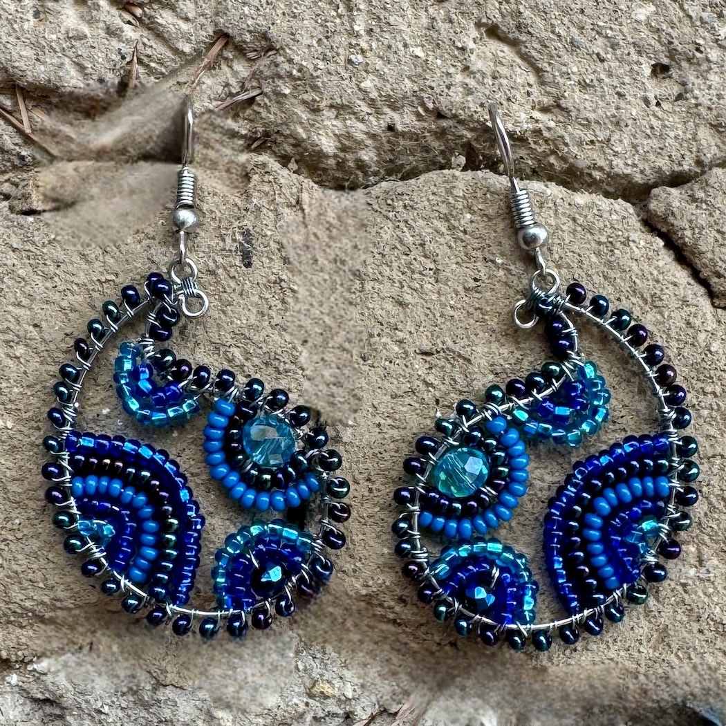 Why should paisley be confined to fabric? Reinterpreting the iconic popular pattern, these earrings boast a glittering array of seed beads and crystal beads. The look is something special, with metal wire creating the distinctive paisley teardrop.