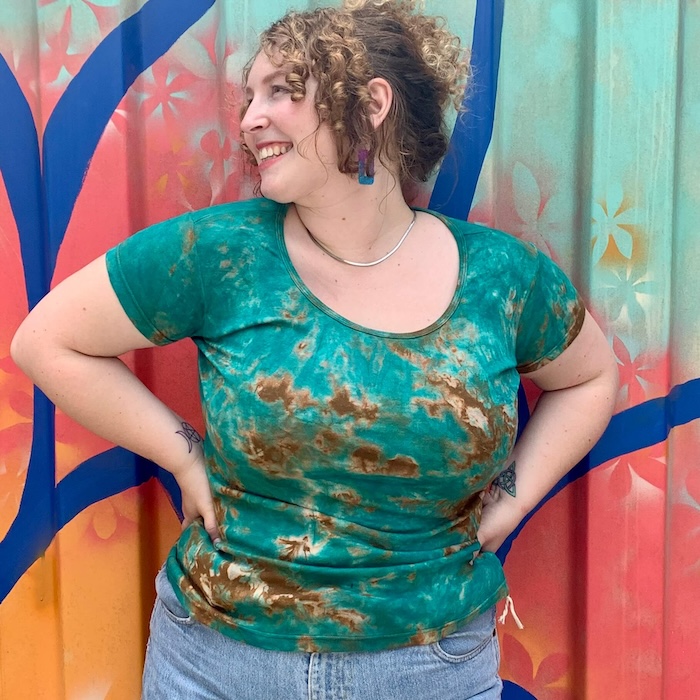 There's nothing ordinary about this fun, form-fitting t-shirt. Its rich colors come from an unconventional process called reverse dye, and its 100% cotton knit means it stretches with you -- adding up to four inches to the sizes shown below. Each shirt is different, thanks to the one-of-a-kind patterns created by the reverse tie dye process.