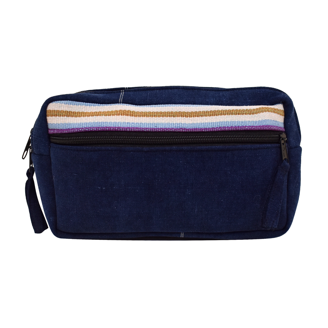 This convertible sling bag can serve as either a crossbody, belt bag, or padded travel pouch depending on your plans for the day. Each is made of deep navy blue repurposed 100% cotton CORTE with vibrant handwoven accents, and no two are exactly the same. The strap and zipper pulls are handwoven 100% cotton with colorful embroidered accents, highlighting the craftsmanship of Guatemalan textiles.