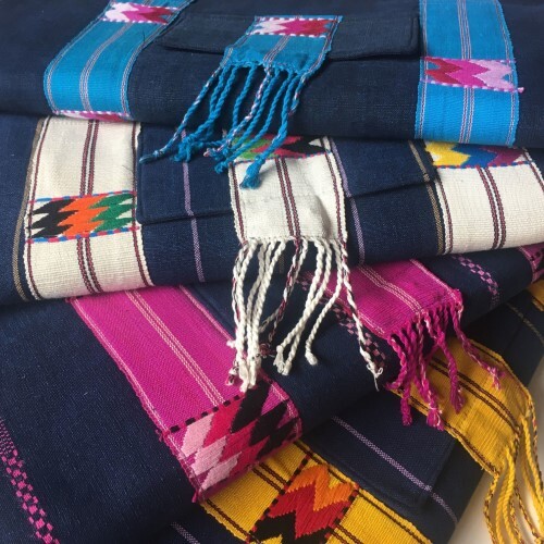 This bag was made from a recycled corte, a vibrant handwoven skirt worn by Guatemalan women. When these durable cortes are ready for a second life, they are hand selected from local markets, washed, and redesigned into a sturdy, functional everyday bag or travel companion.