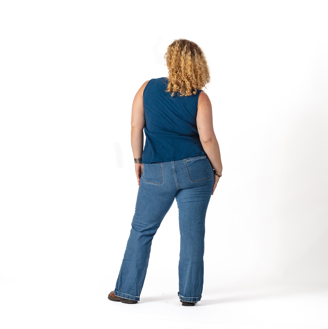 Measurements: 15" chest, 40" waist, 50" hips, 26.5" L in front, 25.5" L in back