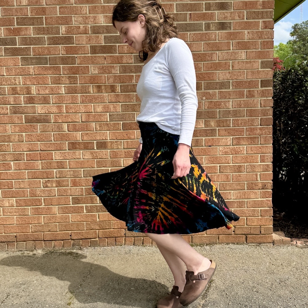 Put a new spin on your wardrobe with this fun spandex skirt. Wherever you go, the dynamic tie-dyed patterns will make you feel like dancing. One size.
