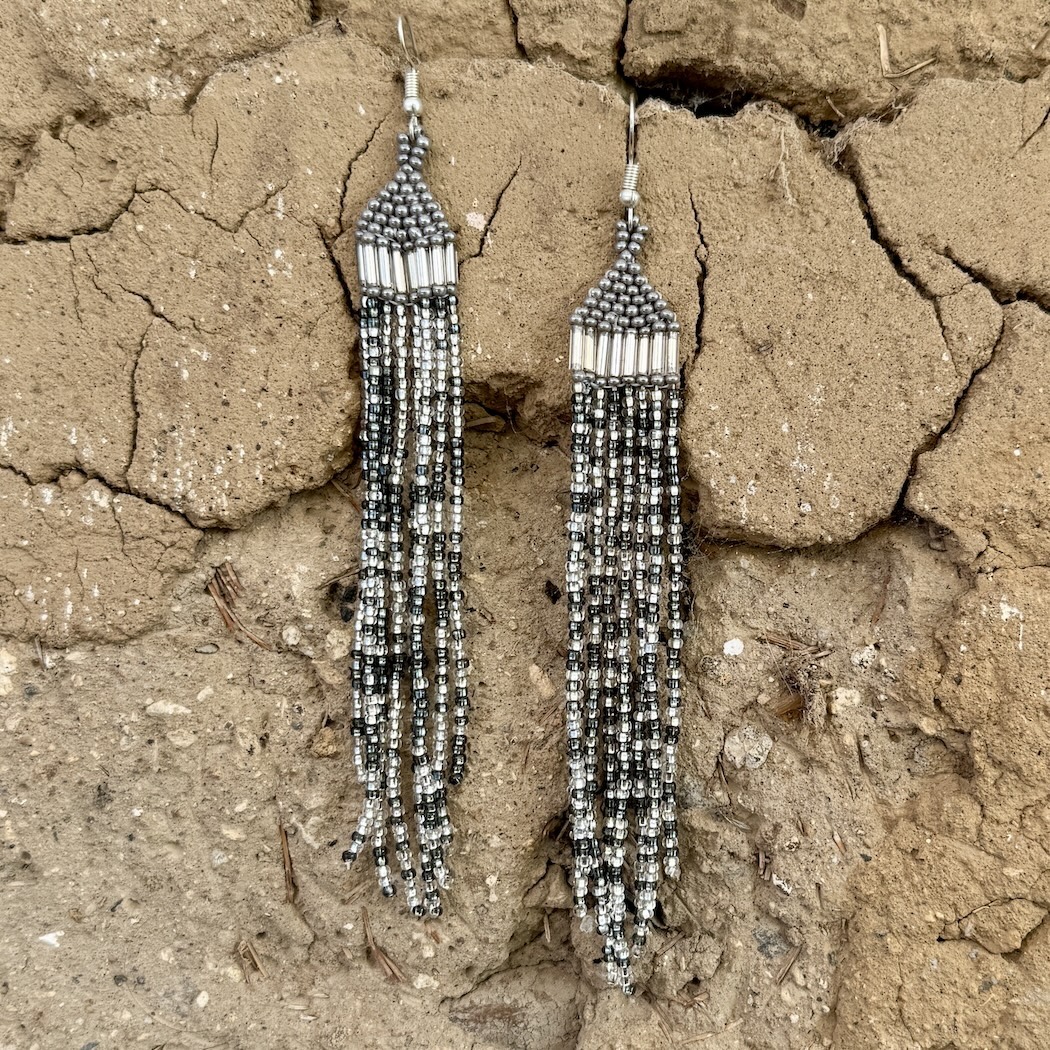 You'll make a splash, fashionwise, with these long, dramatic earrings. Each earring consists of eight strands, covered with gleaming seed beads.