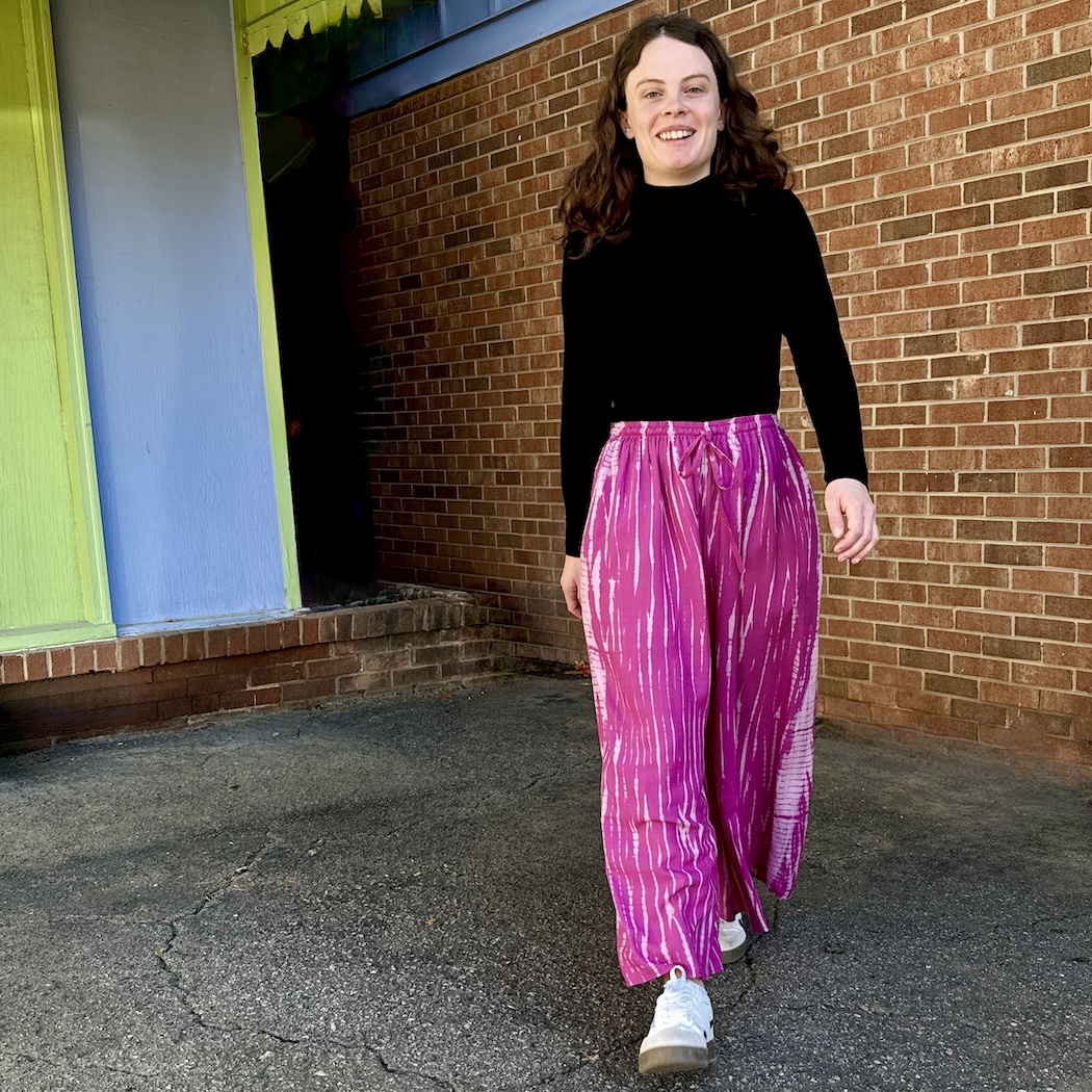 These pants are flowy and fun, giving you a stylish retro look -- like a star from the Golden Age of Hollywood. Tie-dyed designs provide a touch of sophistication, while the 100% rayon fabric keeps you cool and comfortable. One size.