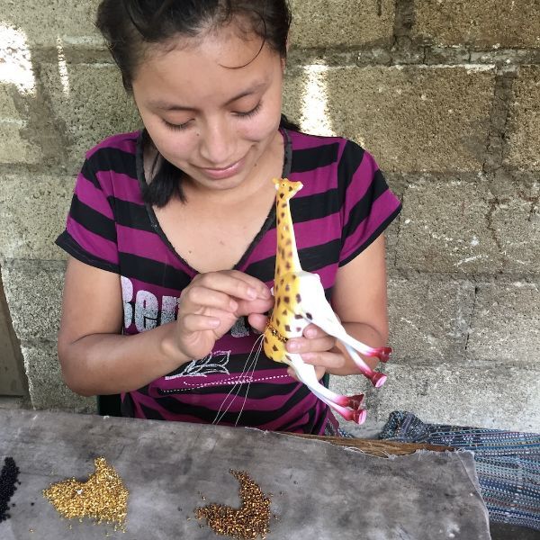 Creating a beaded animal in Guatemala.